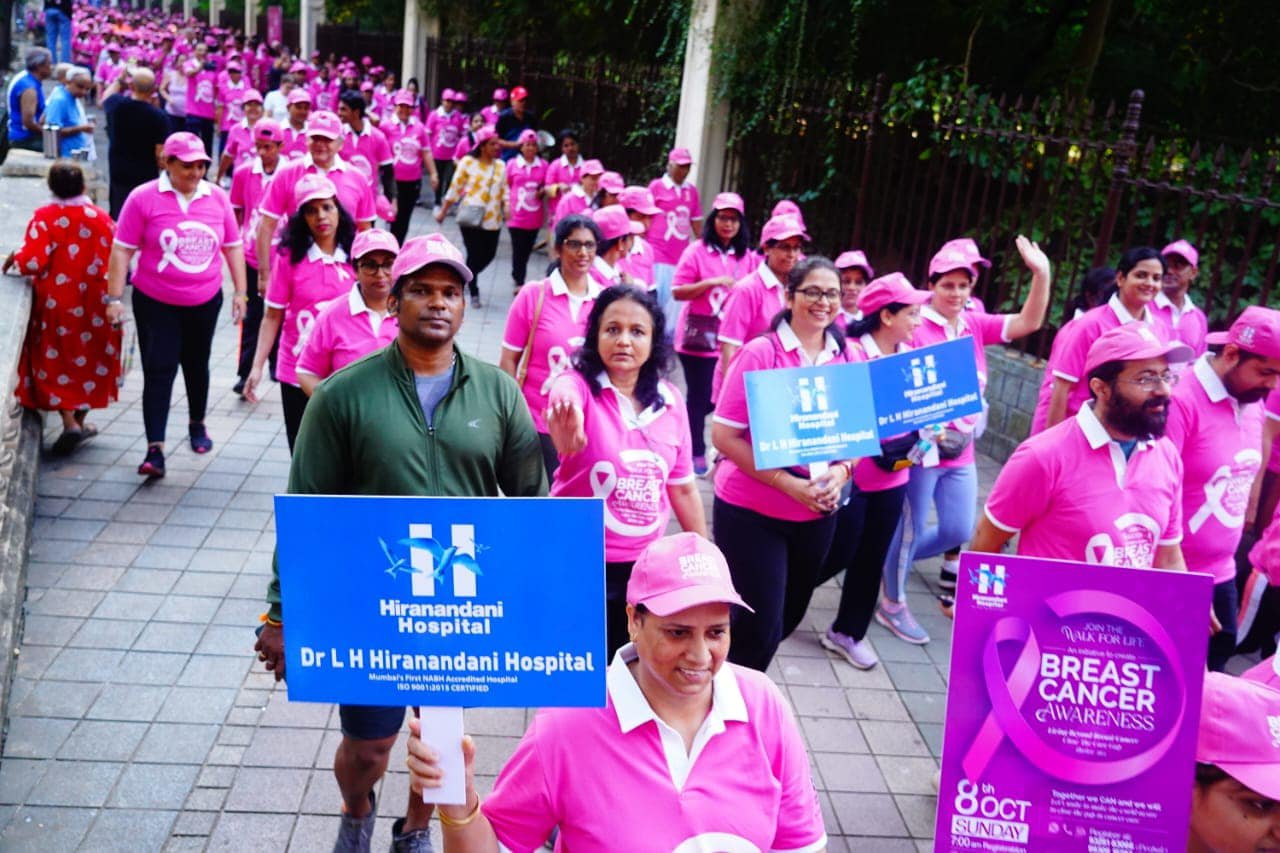 Dr L H Hiranandani Hospital hosted the - Walk for Life. It was organized for creating and spreading awareness about breast cancer in the city. With 700 participants, it stared from Heritage Gardens at Hiranandani complex, Powai covering a distance of 2.2 kms around the scenic Powai Hiranandani Gardens . Also present at this proud occasion were many breast cancer survivors.