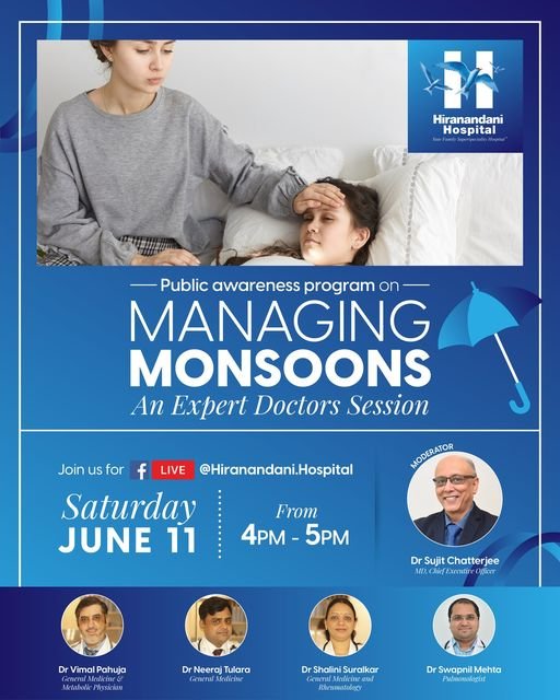 LIVE session with our expert doctors as we discuss "Managing Monsoons" and how one can keep themselves healthy during this monsoon season, Date: 11th June,2022.